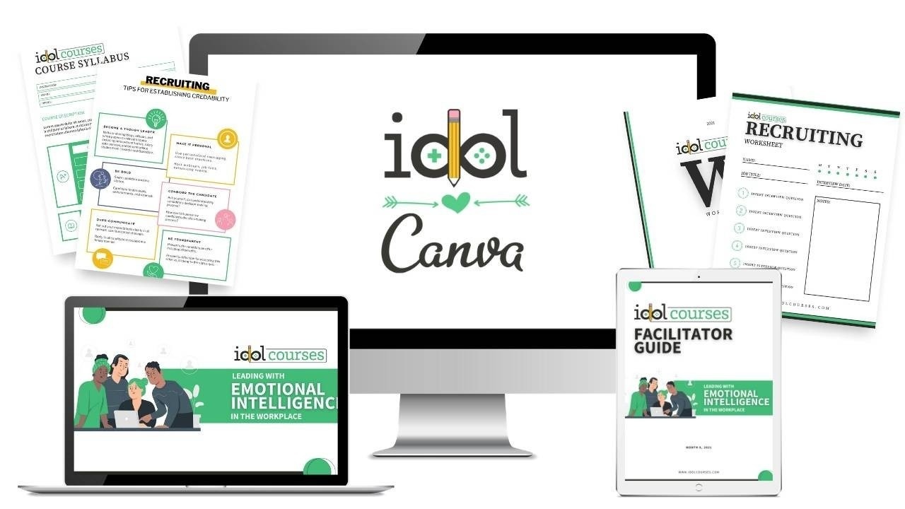 In IDOL 💚 Canva, you'll learn how to make ten different learning assets with clear, step-by-step instructions. This practical will help you build your design skills and uplevel your eLearning and instructional design services.